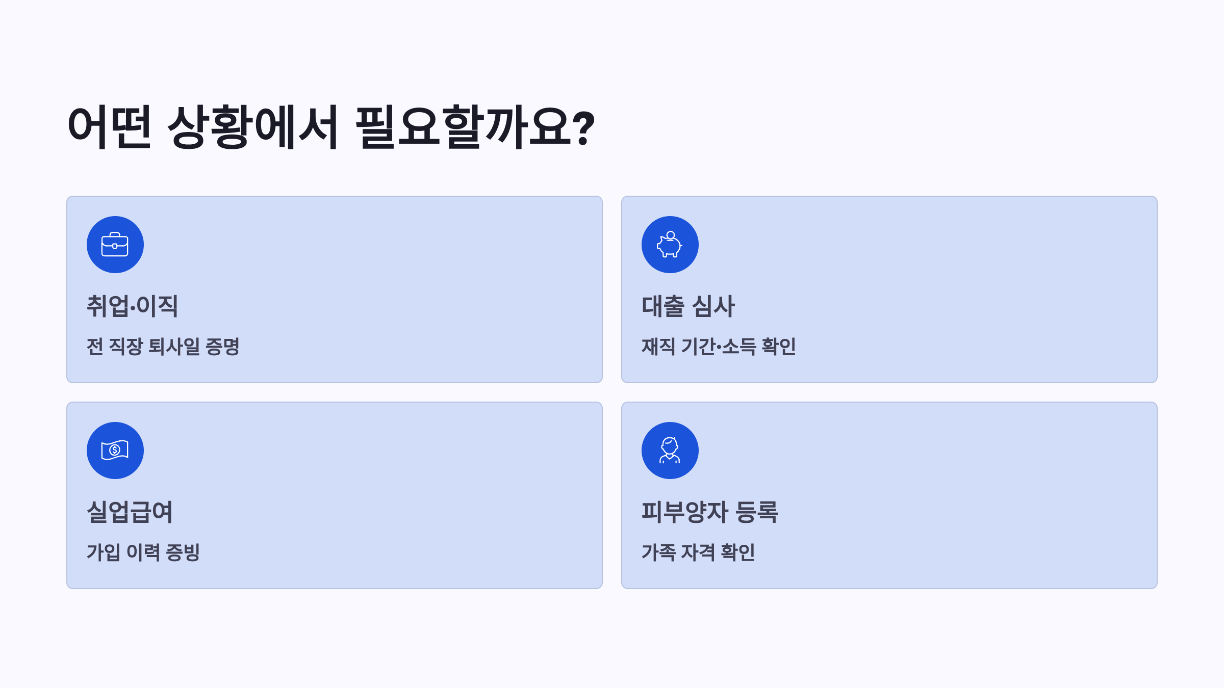 실업급여를 신청하거나 국민연금 가입 이력을 확인할 때도 필수적이며, 각종 정부 지원금 신청 시 소득 증빙 자료로도 제출됩니다. 피부양자 등록을 위해 가족의 건강보험 자격을 확인할 때도 이 서류가 필요합니다.