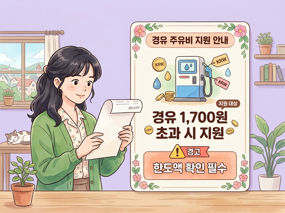 A2. 2026년 기준, 전국 주유소 평균 경유 판매 가격이 리터당 1,700원을 초과할 경우 초과분의 일정 비율을 보조금으로 지급하는 연동제가 적용됩니다. (유가 상황에 따라 정부 고시가 변동될 수 있습니다.)