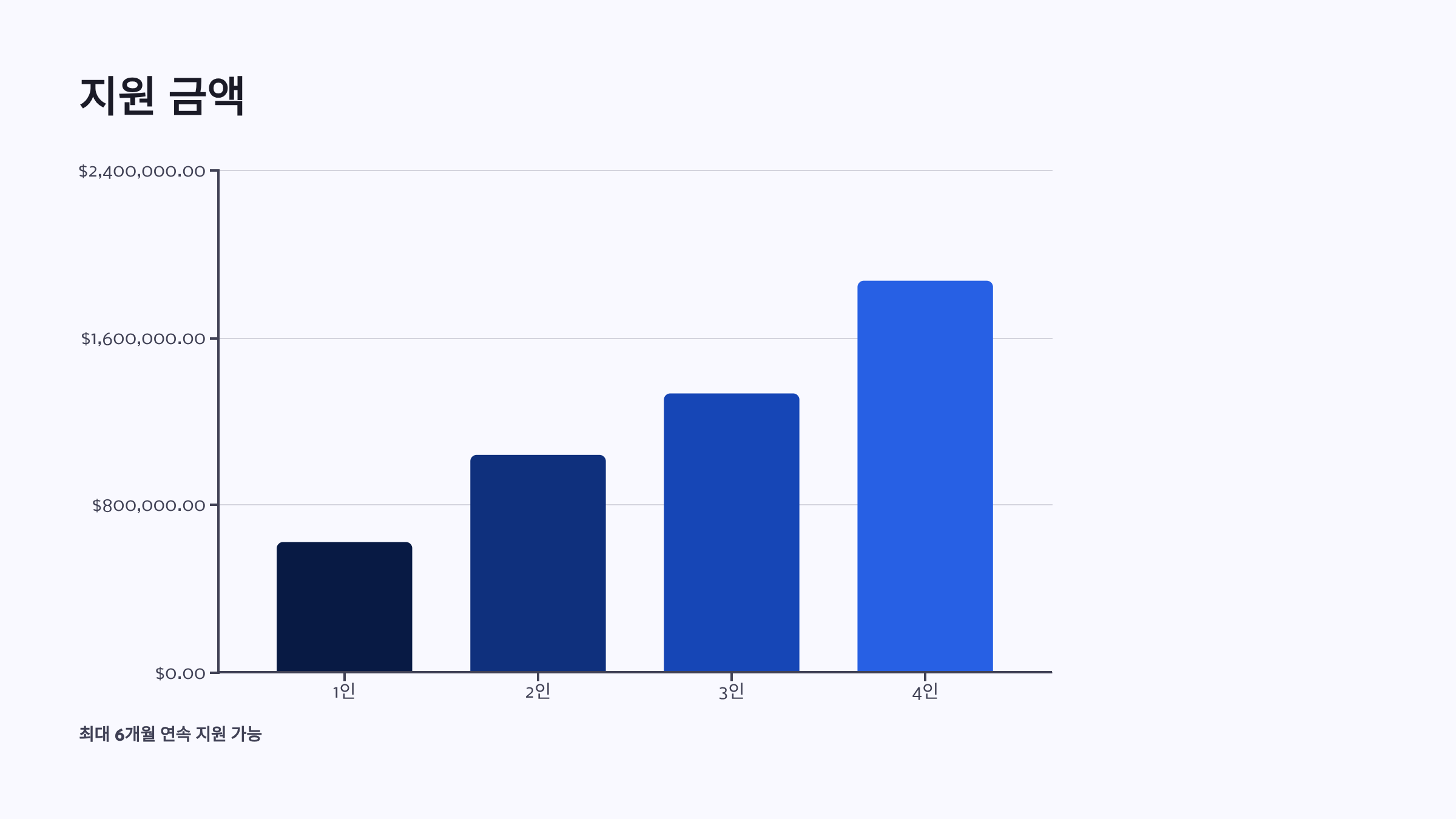 | 가구원 수 | 월 지원 금액 | 최대 지원 기간 |