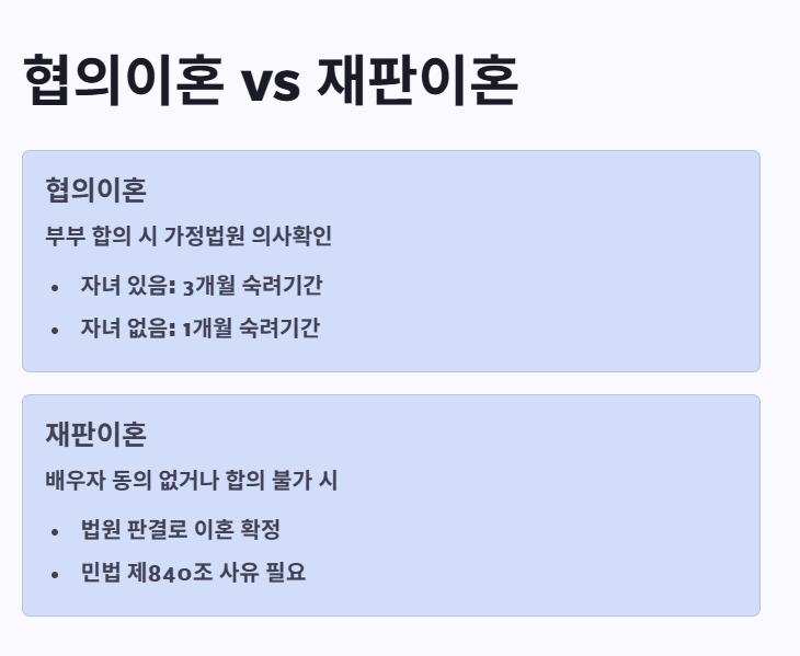 | 협의이혼·조정이혼·재판상 이혼 차이 한눈에 비교하기 (0) | 2025.12.28 |