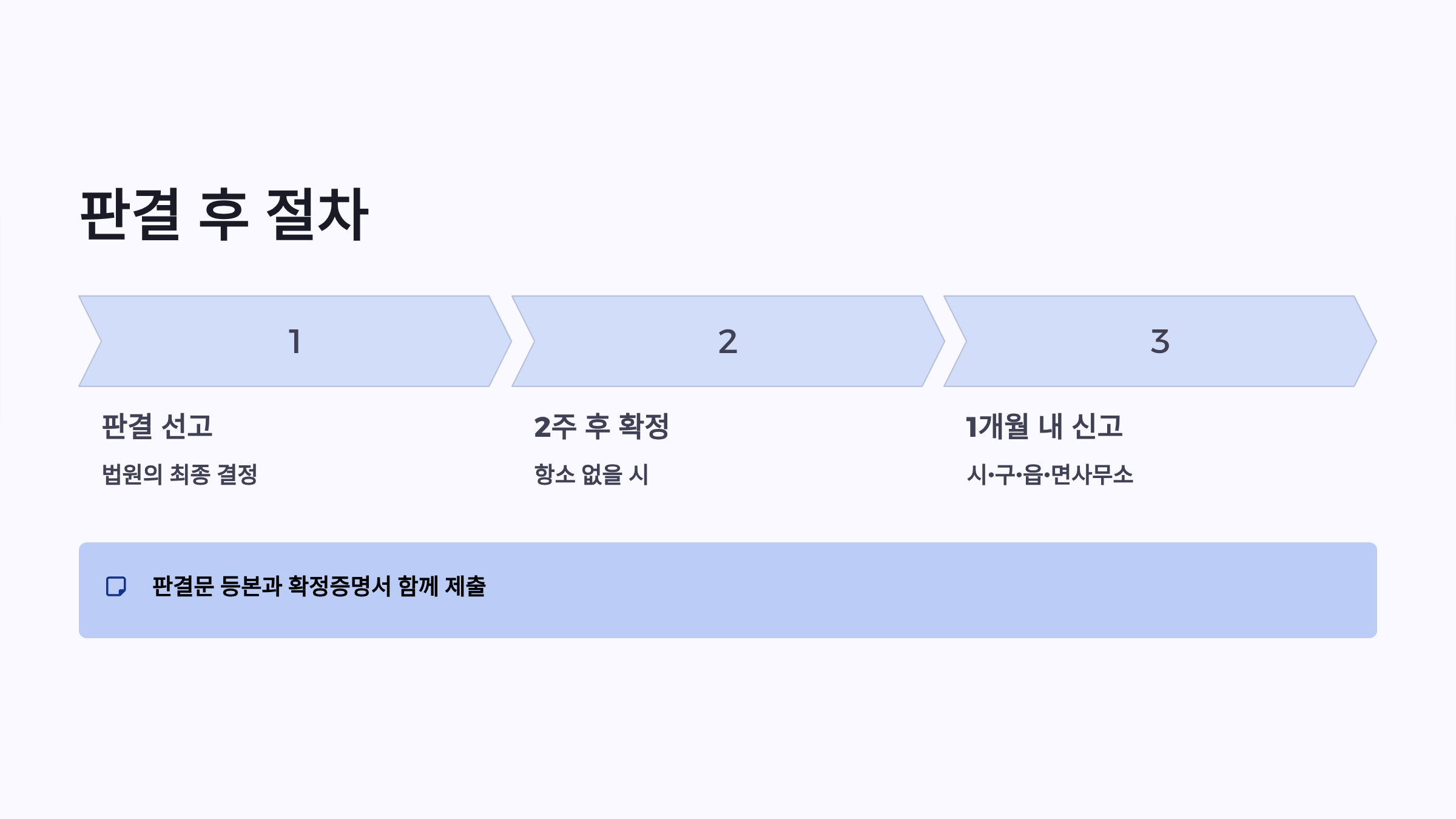 | 판결 확정 | 2주~1개월 | 항소 없을 시 확정 |