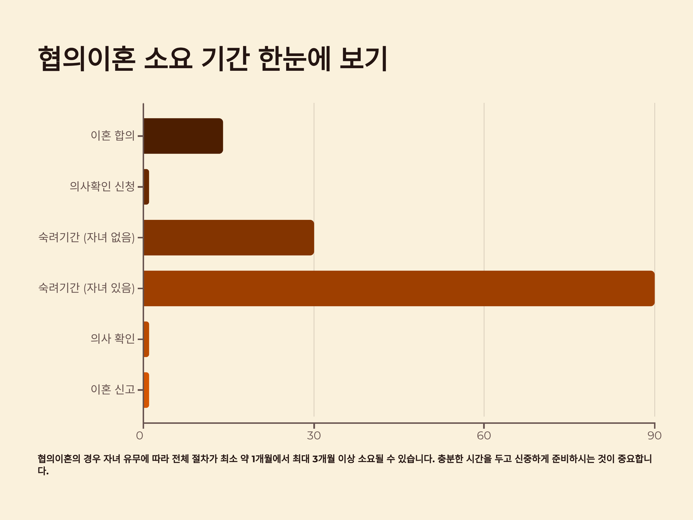 | 이혼 합의 | 부부 간 이혼 및 조건 합의 | 개인차 있음 |