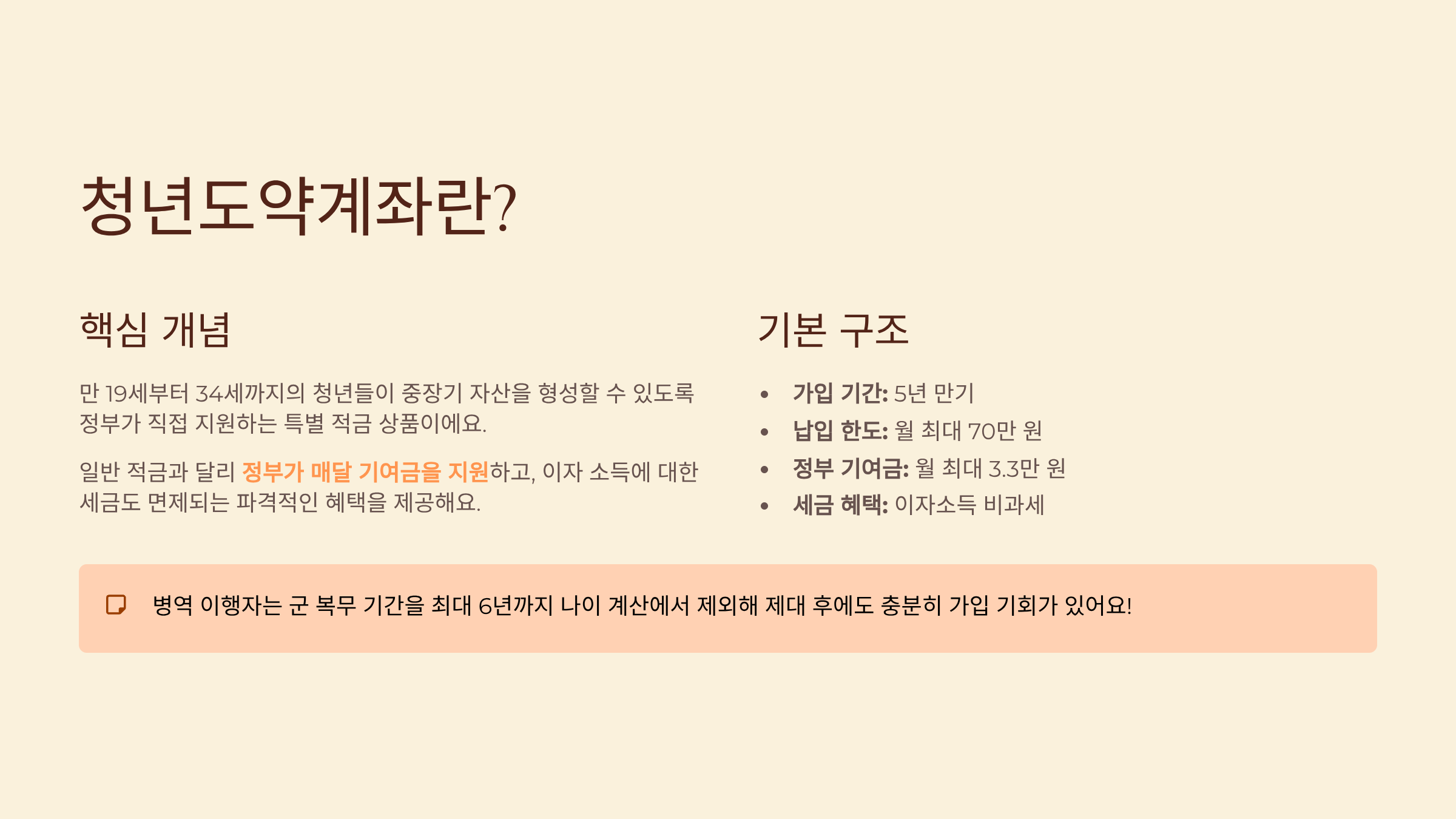 가입을 위해서는 나이, 개인소득, 가구소득 세 가지 주요 요건을 모두 충족해야 해요. 병역 이행 기간은 최대 6년까지 나이 계산에서 제외되니 군 복무를 마친 청년들도 충분히 가입 기회가 있어요. 2025년부터는 현역 군 장병도 가입이 가능해졌죠.