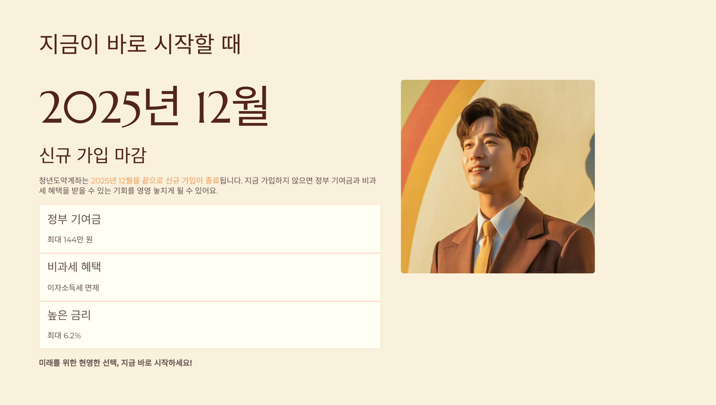 2025년 12월을 마지막으로 청년도약계좌의 신규 가입이 종료될 예정이에요. 아직 가입하지 않은 청년들은 서둘러야 해요. 정부는 청년도약계좌의 후속 상품으로 '청년미래적금'을 2026년 6월경 출시할 계획이라고 발표했지만, 구체적인 조건은 아직 확정되지 않았어요. 새로운 상품이 현재의 청년도약계좌만큼 좋은 조건을 제공할지는 미지수예요.