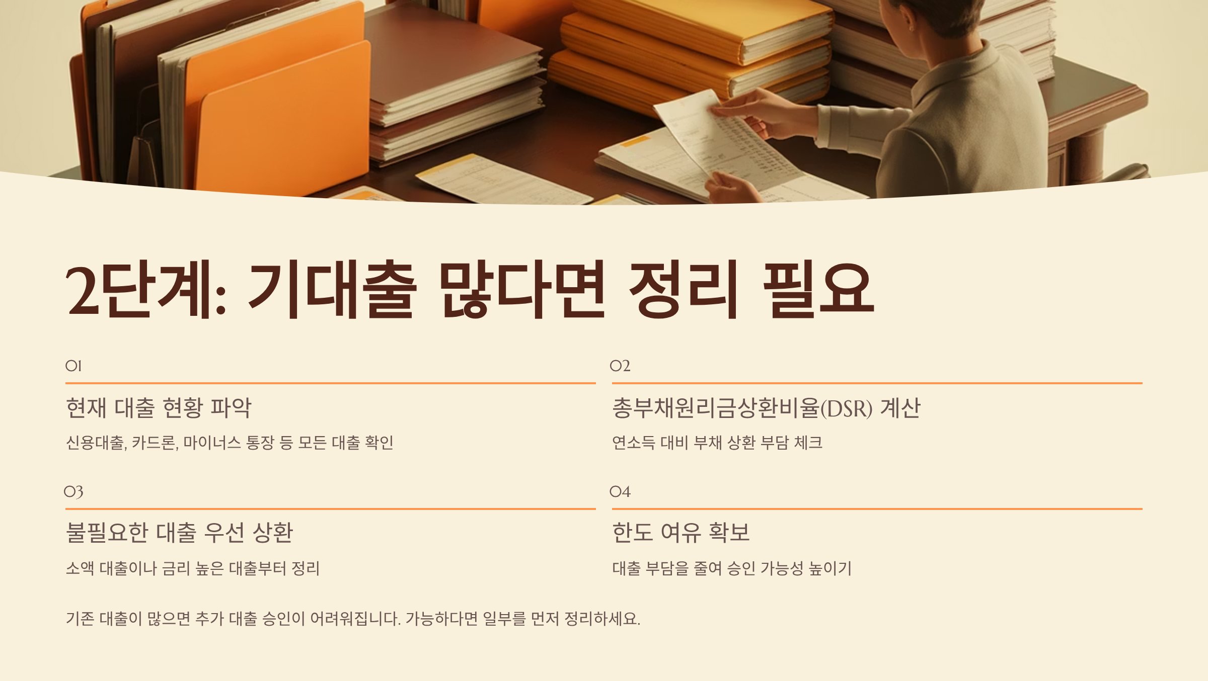 기대출이 많다면 대출 금액을 줄이는 것도 한 방법이에요. 일부라도 조기상환하거나, 대출 기간을 조정해서 월 상환액을 줄이는 식으로 DSR을 낮추는 전략이 필요해요.
