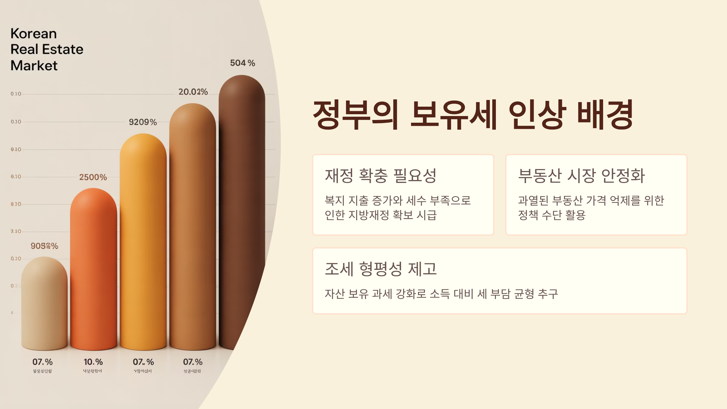 보유세 강화는 집을 소유하고 있는 사람에게 매년 일정 세금을 부과해 ‘보유 비용’을 높이는 방식으로, 단기 투자 목적의 주택 구매를 억제하는 효과가 있답니다. 특히 다주택자들의 투기 심리를 억누르기 위해 이 카드는 여러 차례 사용돼 왔죠.