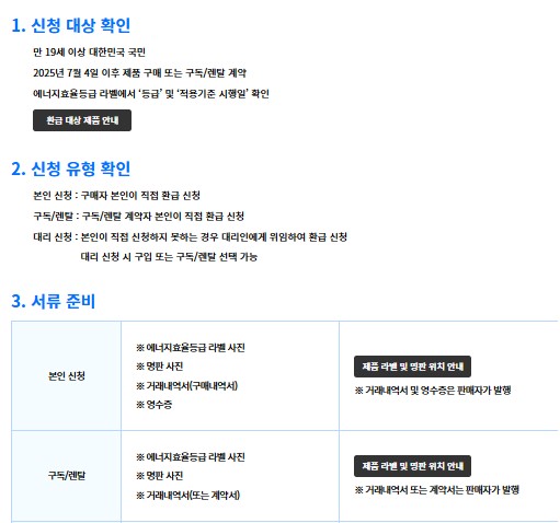 ※ 본 글은 2025년 으뜸효율 가전제품 환급사업 안내를 위해 작성되었으며, 실제 신청 시에는 반드시 정부 공식 안내문을 참고하세요.