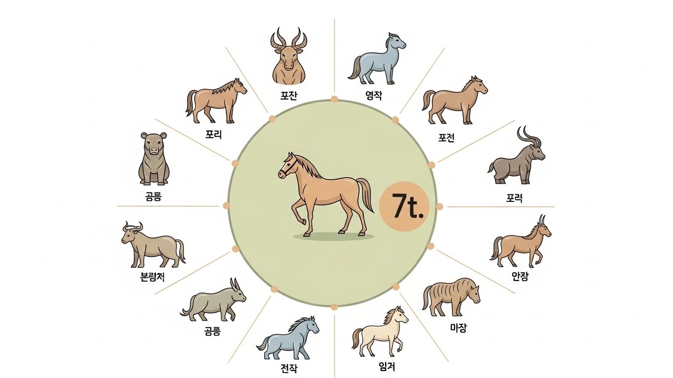 12지지의 순서는 고대 중국에서 동물의 특성을 바탕으로 정해진 것으로, 각 동물은 고유한 성질과 의미를 가지고 있습니다. 말띠는 활동성, 에너지, 진취성을 상징하며, 12띠 중에서도 가장 활발하고 밝은 특성을 가진 것으로 알려져 있습니다.
