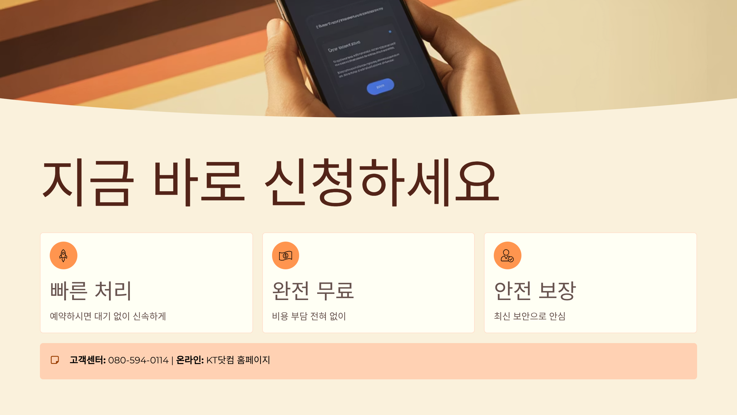 교체 대상 확인은 KT 고객센터(080-594-0114)로 전화하거나 KT닷컴 홈페이지에서 간단히 확인할 수 있어요. 본인 명의의 휴대폰 번호와 간단한 본인 인증만 거치면 바로 확인 가능해요.