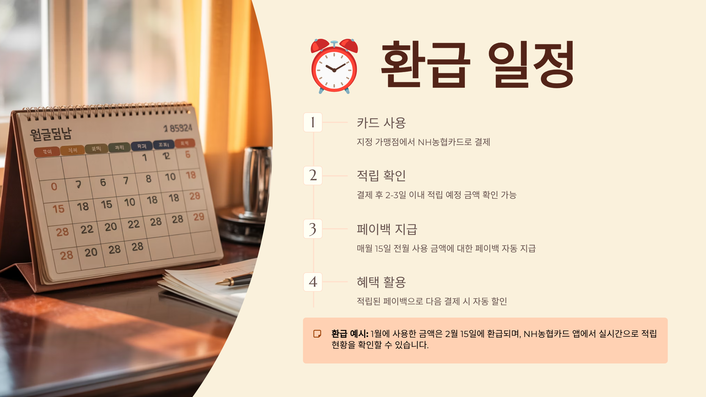 또한, 환급일인 15일은 정확한 날이긴 해도 카드사별 정산 속도나 시스템 점검 등으로 이틀 정도 오차가 생길 수 있어요. 당일 오전에 바로 들어오지 않더라도 너무 놀라지 마세요! 보통 당일 오후~익일에는 지급되니까요 😌